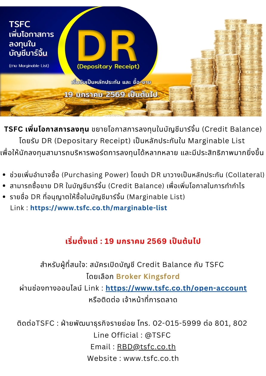 TSFC ขยายโอกาสการลงทุนในบัญชีมาร์จิ้น (Credit Balance)